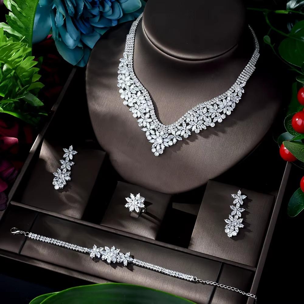 الكلاسيكية قطرة الماء زركون Dubia النساء مجوهرات الزفاف مجموعات 4 قطعة قلادة طقم من الحلقان بيجو فام فرقة S-342