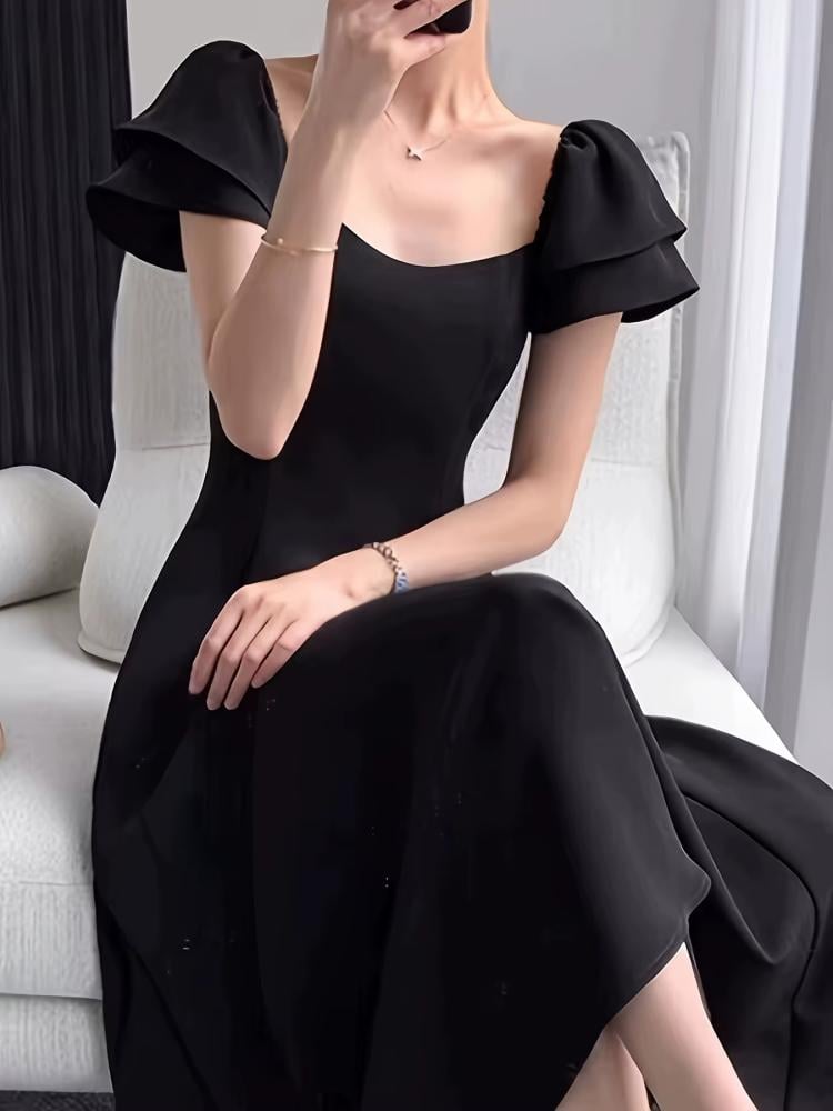 فستان أساسي أنيق بتصميم كلاسيكي على شكل حرف A، يتميز برقبة مربعة تضيف لمسة ناعمة وعصرية. بلونه الأسود الأنيق، يعد خيارًا مثاليًا للإطلالات اليومية أو المناسبات البسيطة، كما يناسب جميع الأجسام بفضل قصّته الانسيابية.